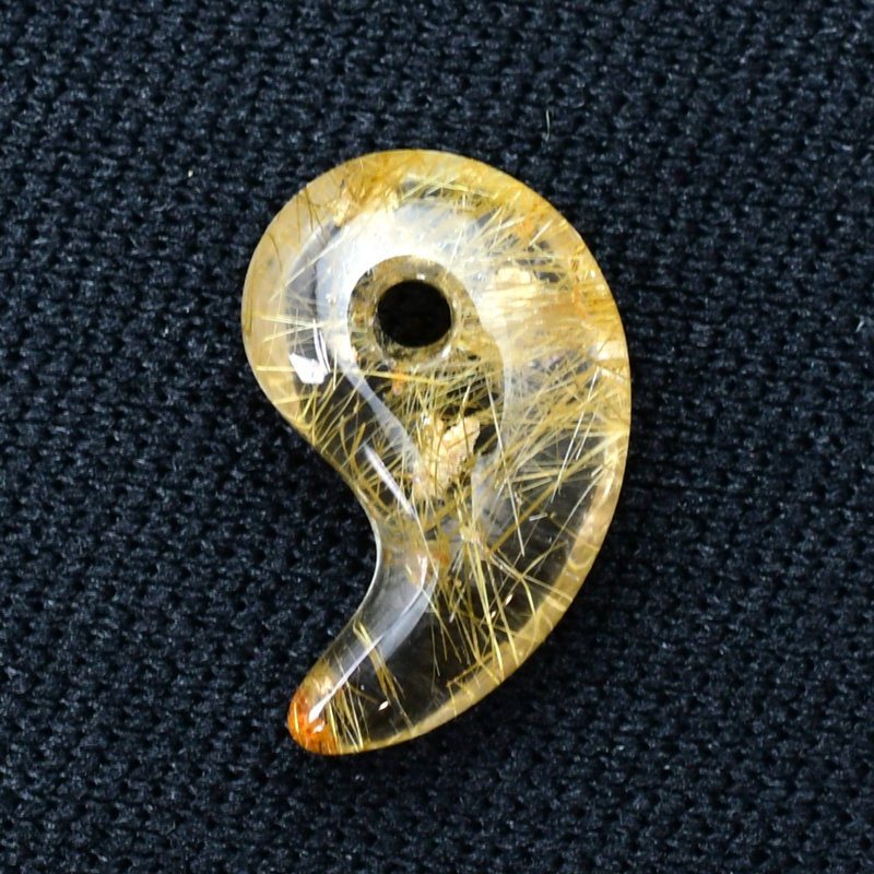 【まるで小宇宙☆きらめきとインクルージョンが神秘的】人気 勾玉 ゴールド ルチル クォーツ 一点物【KMr65】お守り効果 力が宿る パワーストーン 勝負運・金運・目標達成 プレゼント 守護石 京海堂 [KMr65]