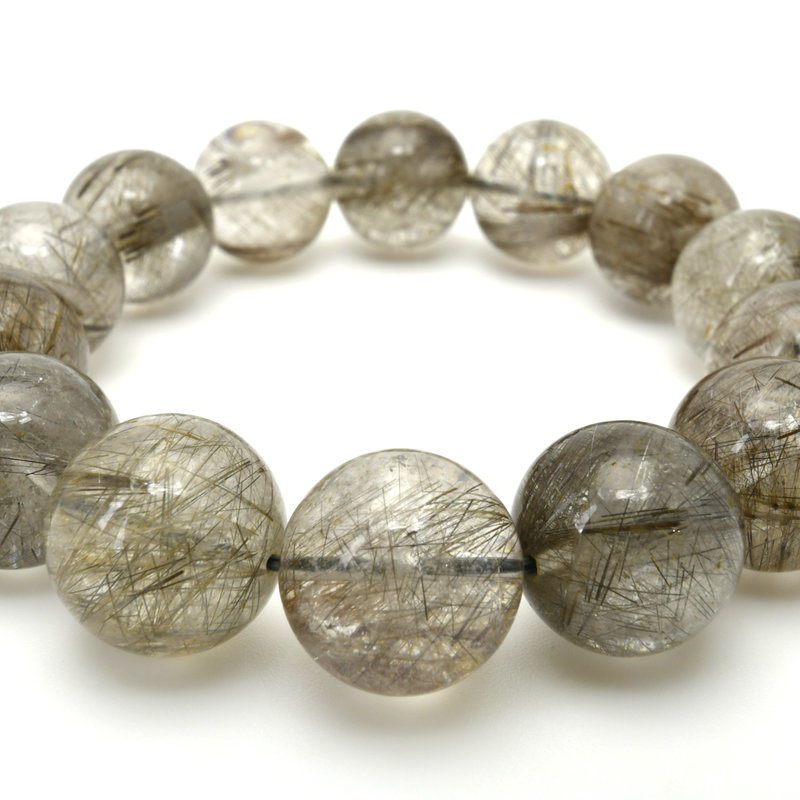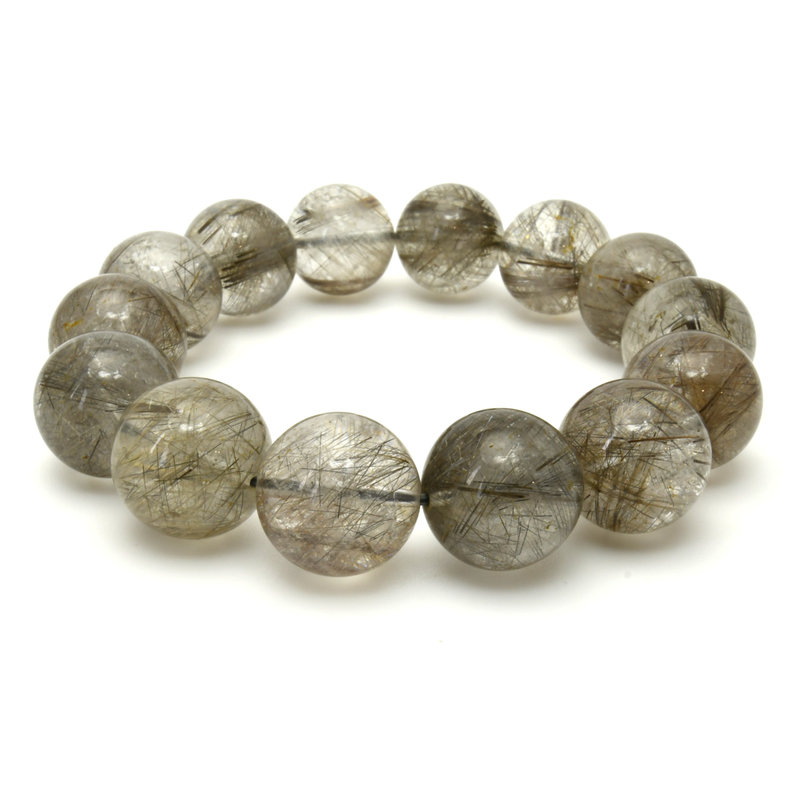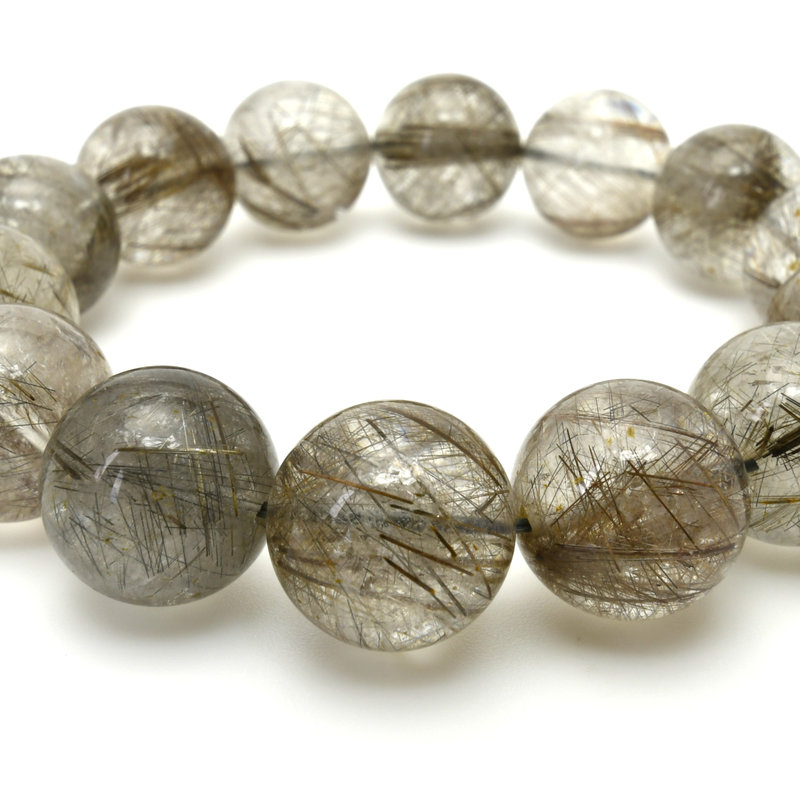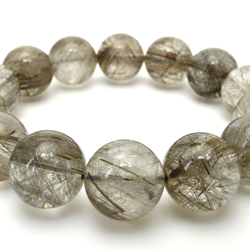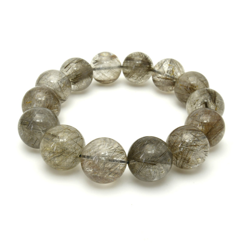 【美しい銀針の艶!】16mm シルバールチルクォーツブレスレット 艶感 一点物【GHB49】 冷静な判断力 直感力の強化 邪気払い 精神の安定 お守り 高品質 クリスマスプレゼント 贈り物 水晶 86g 浄化発送 メンズ レディース ギフト 京海堂 [GHB49]