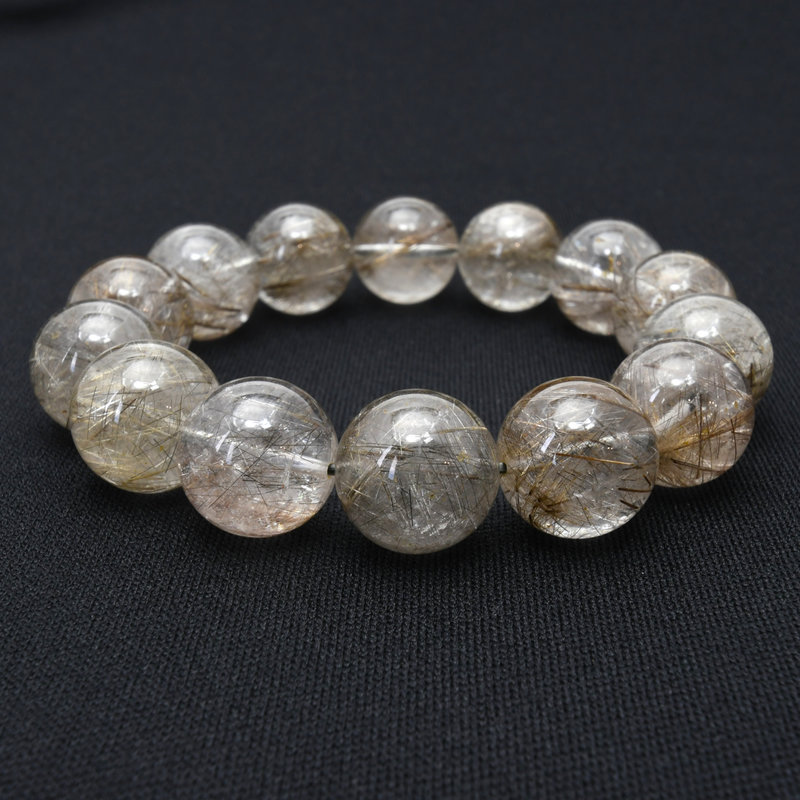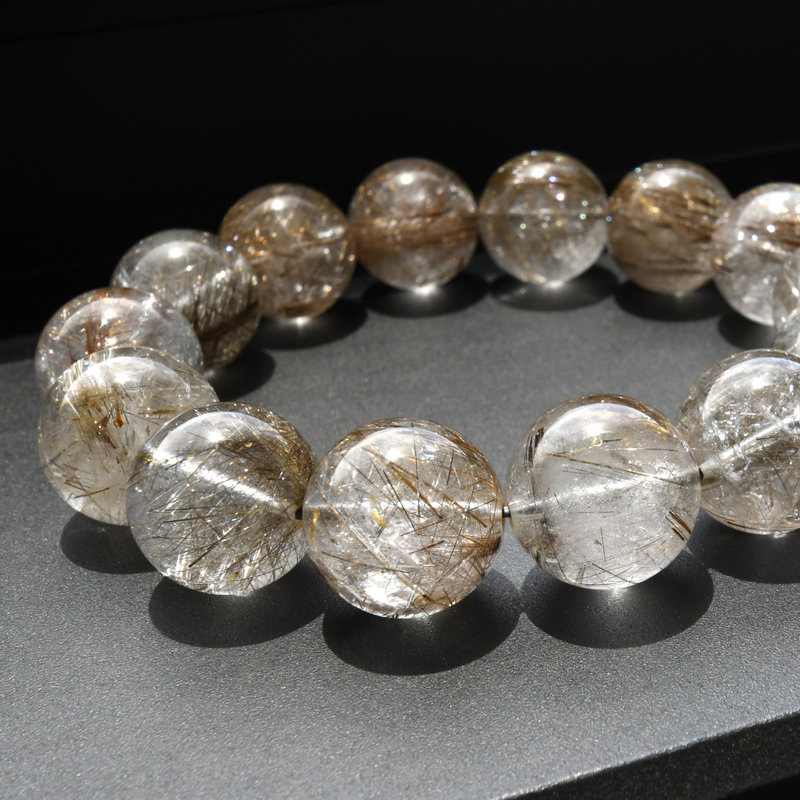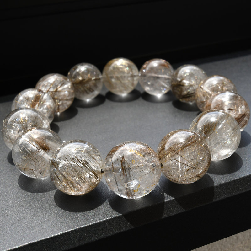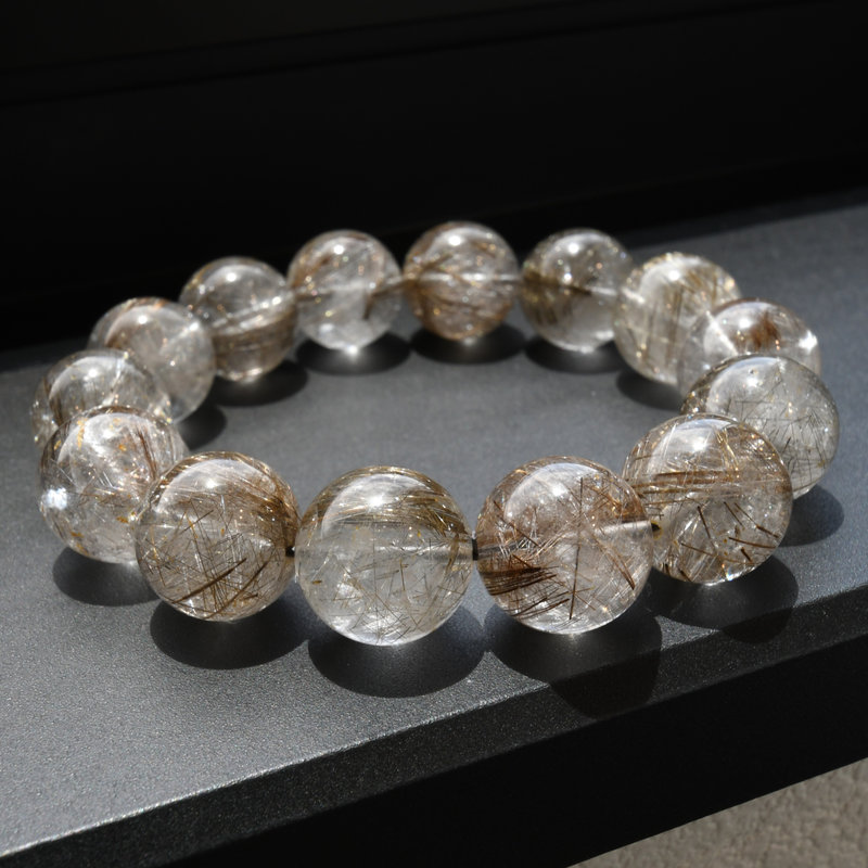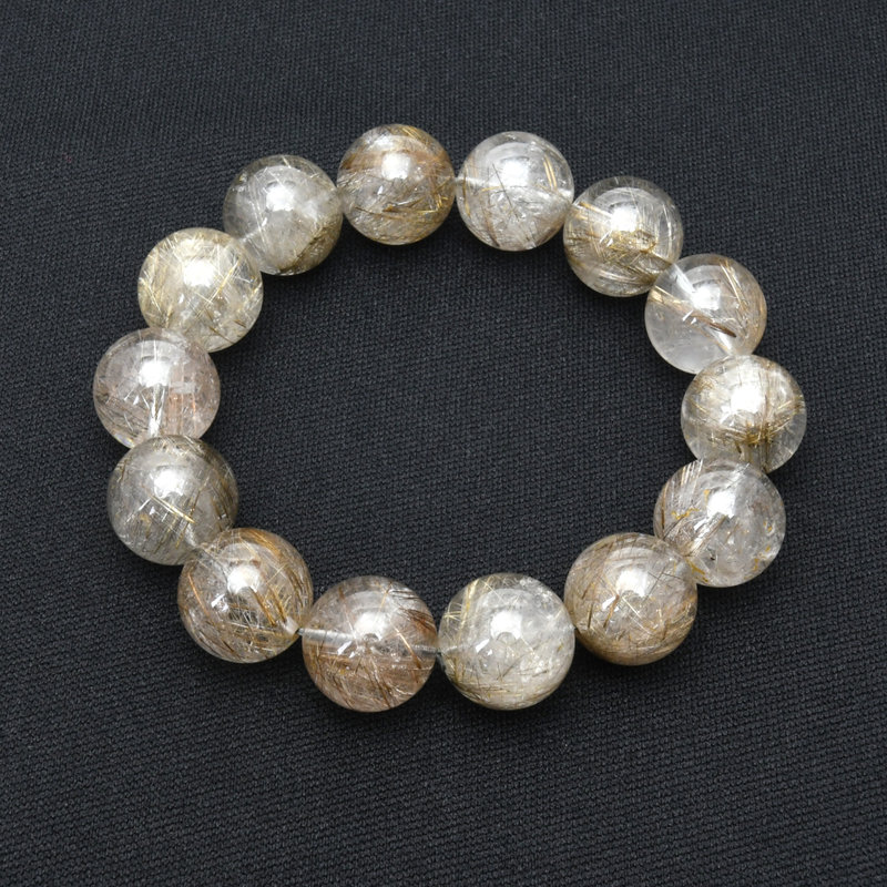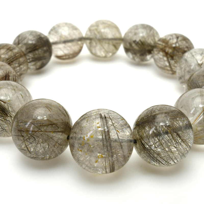 【美しい銀針の艶!】16mm シルバールチルクォーツブレスレット 艶感 一点物【GHB49】 冷静な判断力 直感力の強化 邪気払い 精神の安定 お守り 高品質 クリスマスプレゼント 贈り物 水晶 86g 浄化発送 メンズ レディース ギフト 京海堂 [GHB49]
