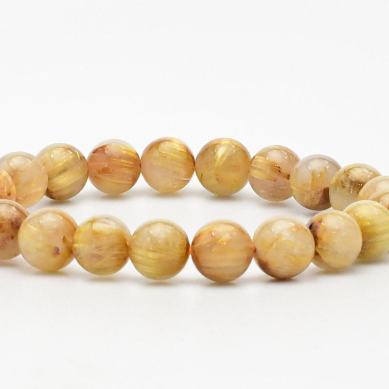 柔らかな輝きの中にしっかりと入った太い金針、そしてシャトヤンシー効果が美しいブレスレットです