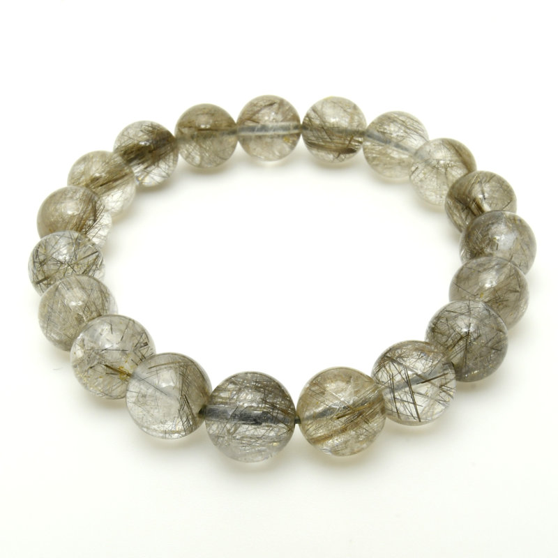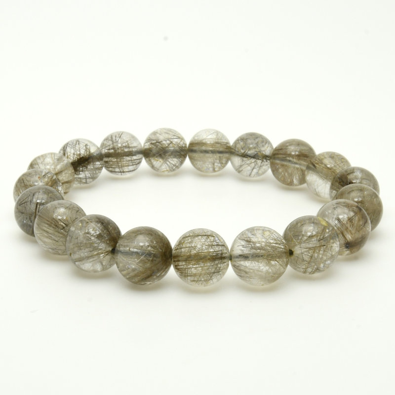 【ギラギラと輝く銀針がクールなブレスレット】10mm シルバールチルクォーツブレスレット 艶感 一点物【GHB51】 浄化 直感力向上 精神の安定 心身のバランス 仕事運 安定した収入 お守り 高品質 プレゼント 贈り物 水晶 32g 浄化発送 メンズ レディース ギフト 京海堂 [GHB51]