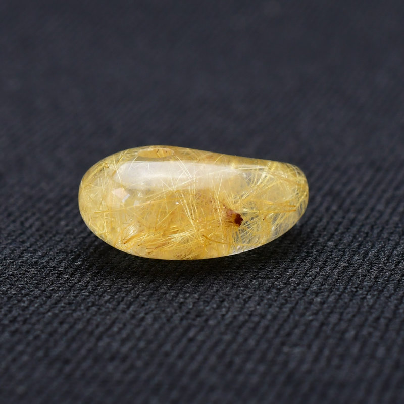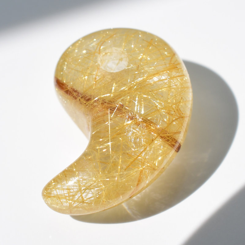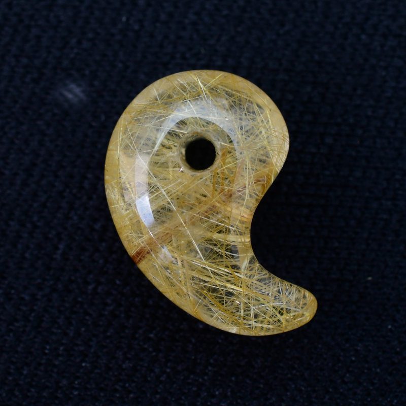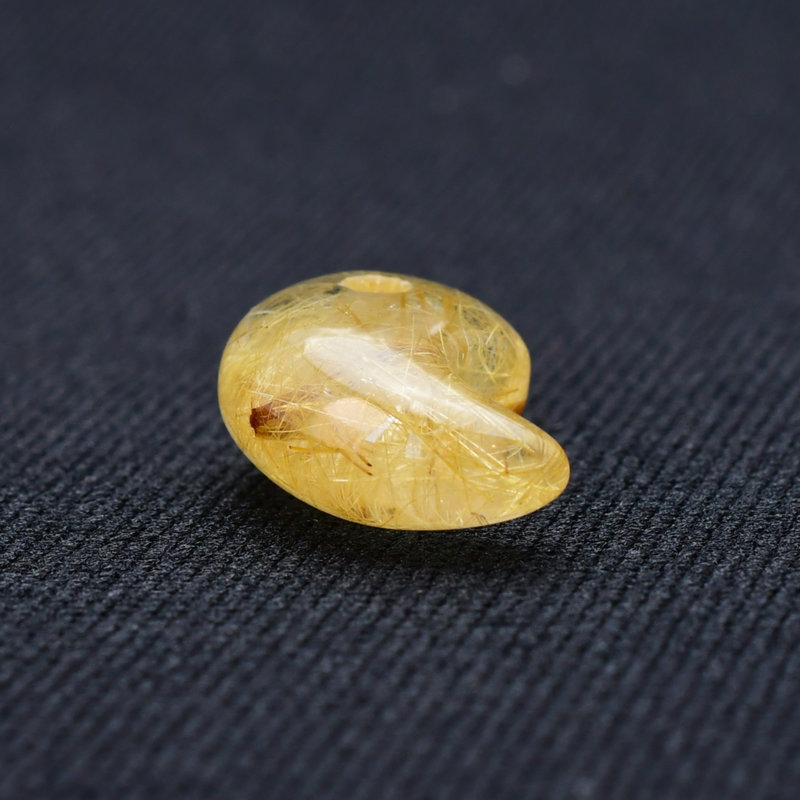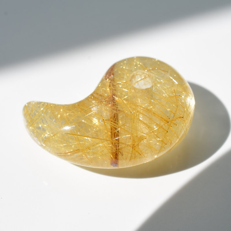 ◇細かいルチルの流れに反し、一本太い金針が交差するように伸びるこの勾玉