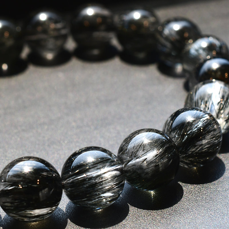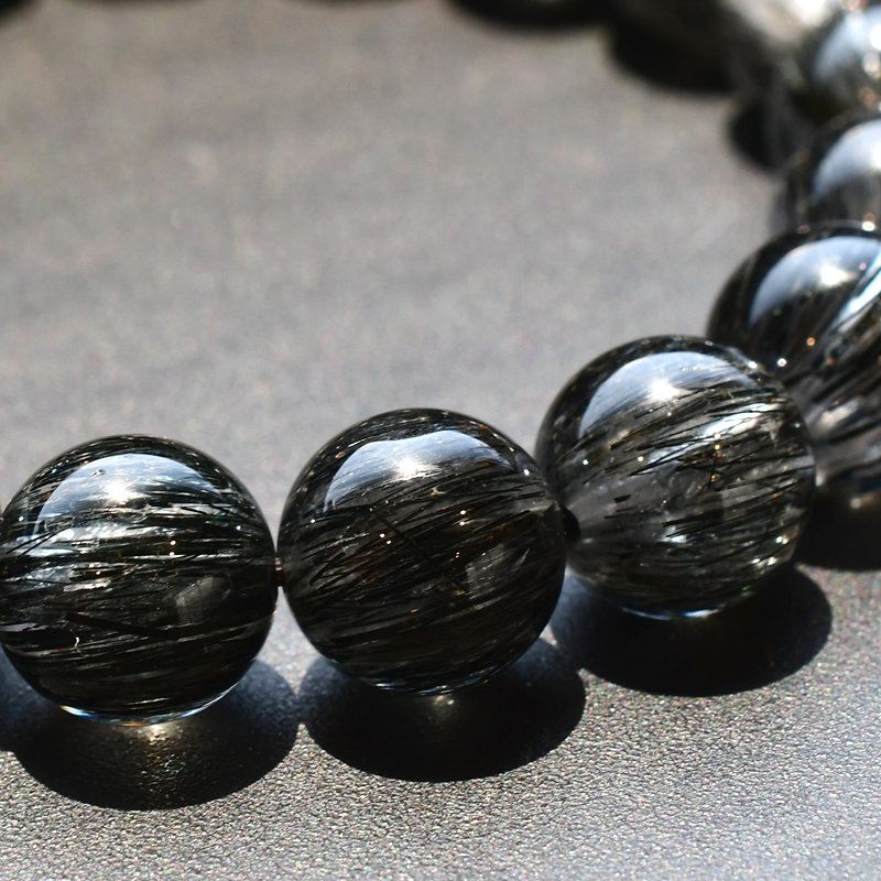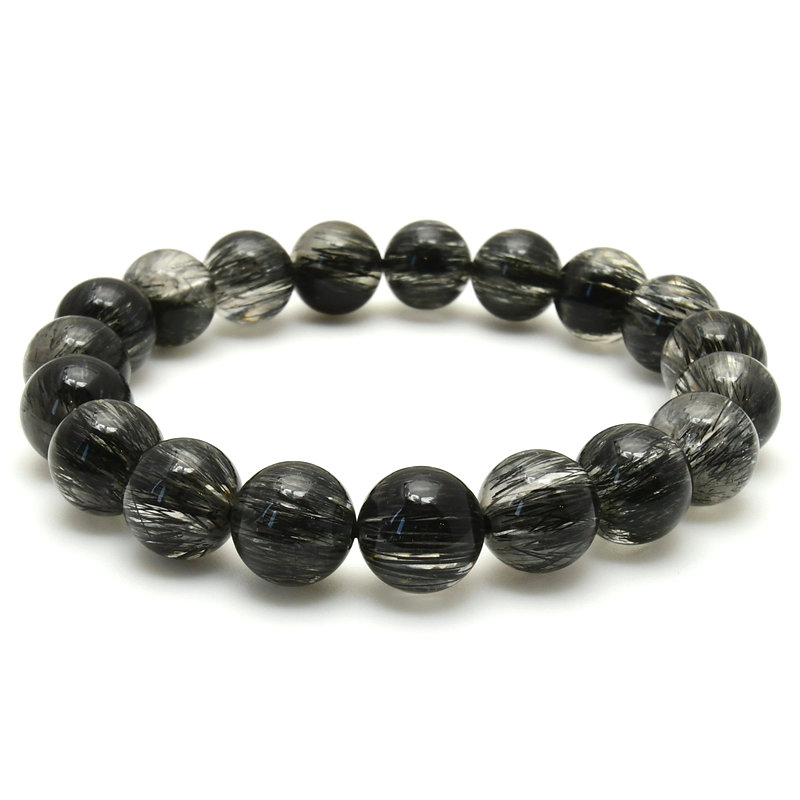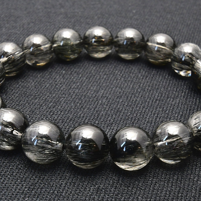 【気品ある逸品☆美しく上品な黒針】10mm ブラックトルマリンインクォーツブレスレット 一点物【GHB60】安心 守護 浄化 前向き 安定 落ち着き ネガティブ除去 高品質 プレゼント 贈り物 天然石28g 浄化発送 メンズ レディース ギフト 京海堂 [GHB60]