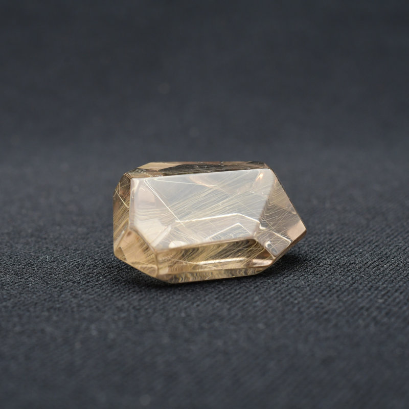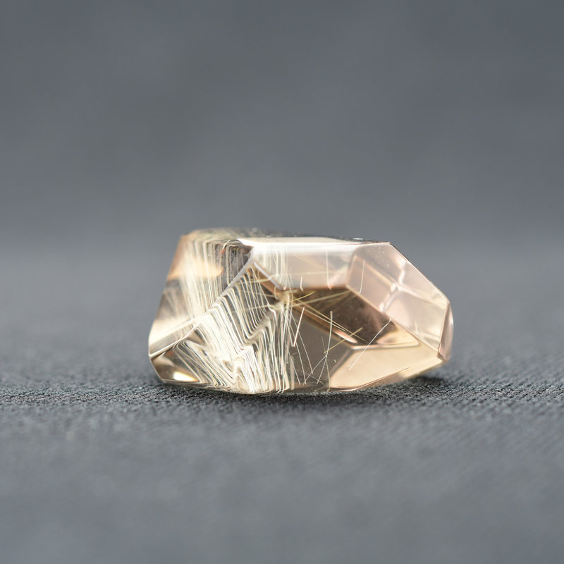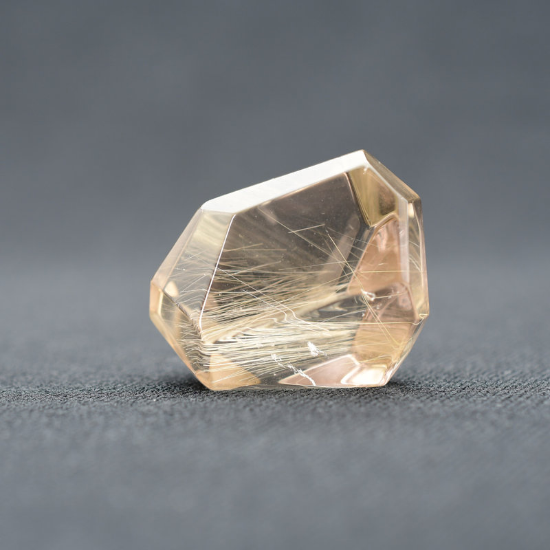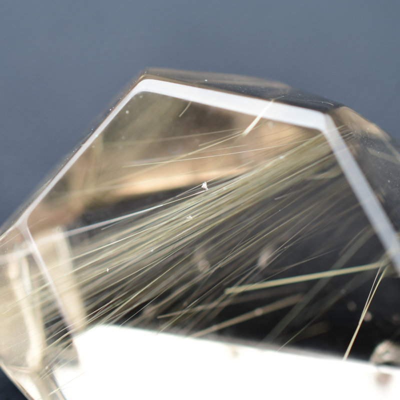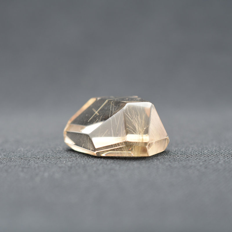 透明度の高いスモーキーなクォーツの中に繊細な金針が輝く、