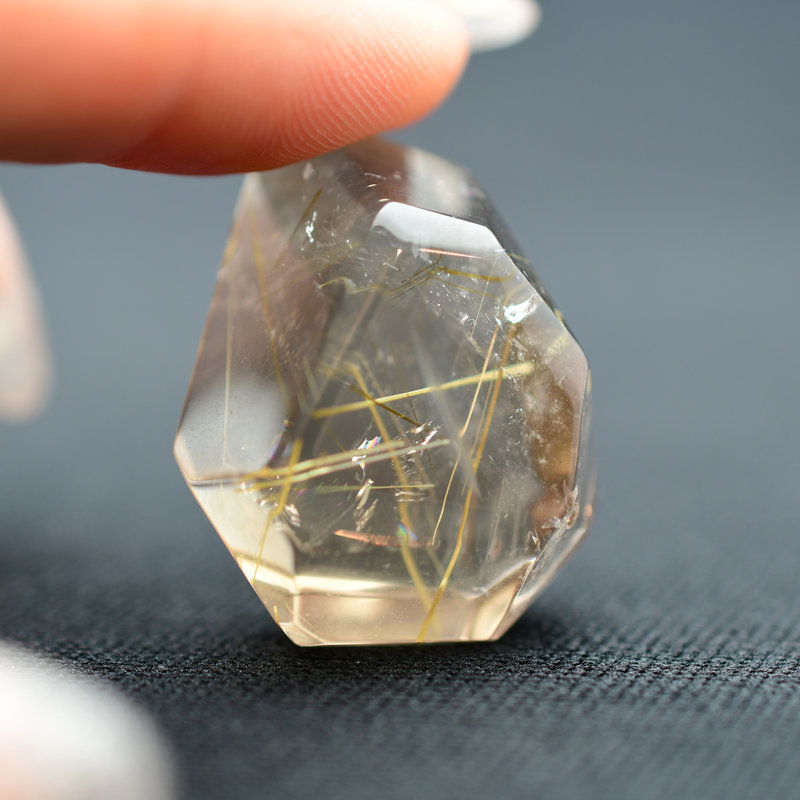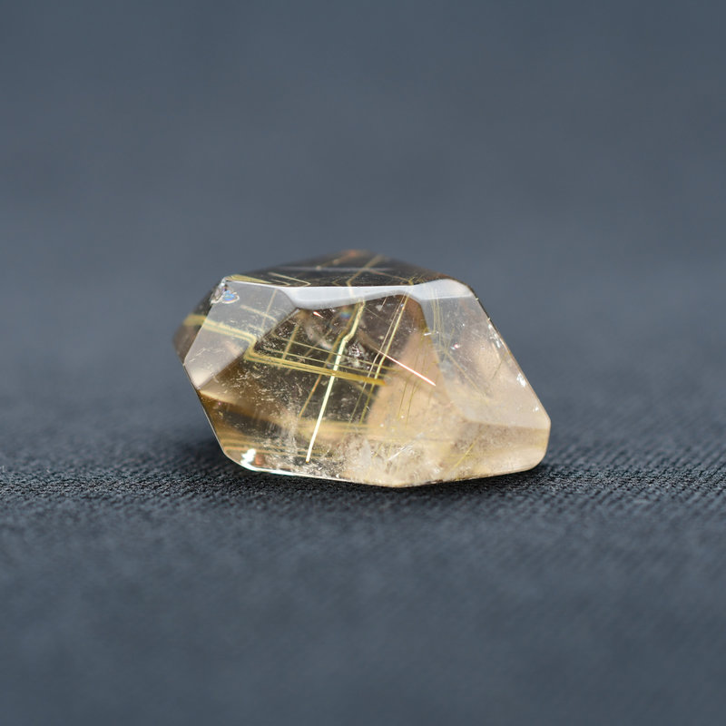 太くはありませんがしっかりとした金針が伸び、角度を変えるたびにその透き通ったクォーツの中でキラキラと光を放つ美しい黄金の線を楽しむことができます