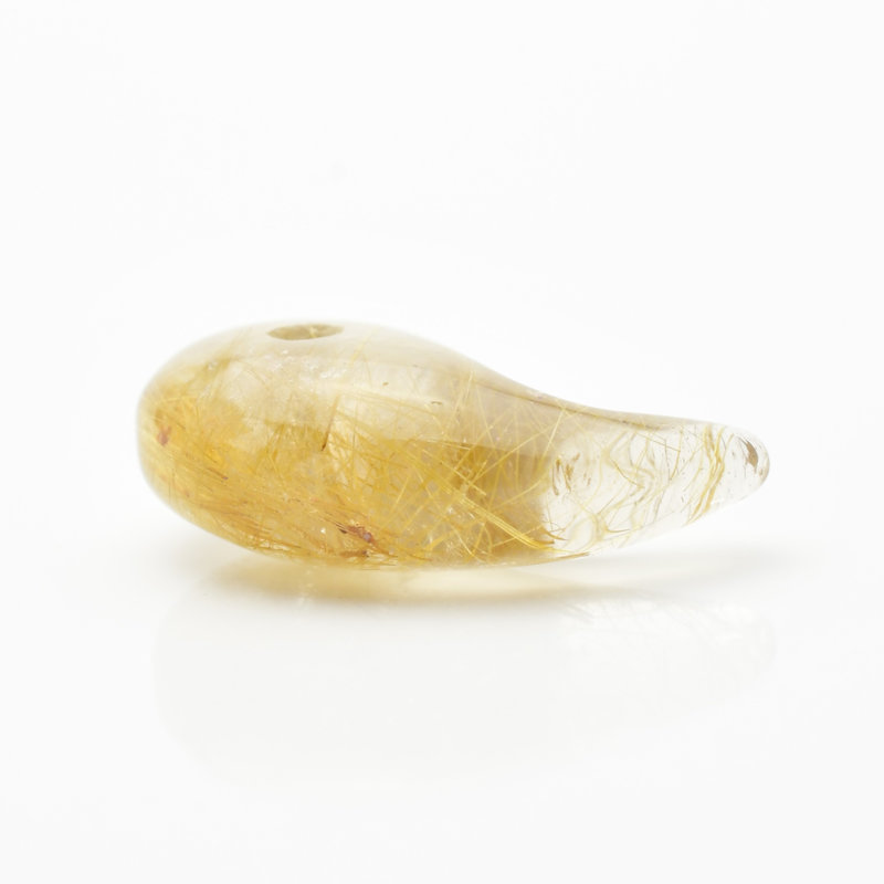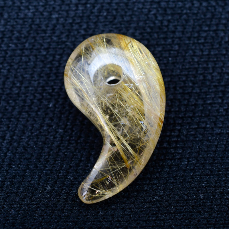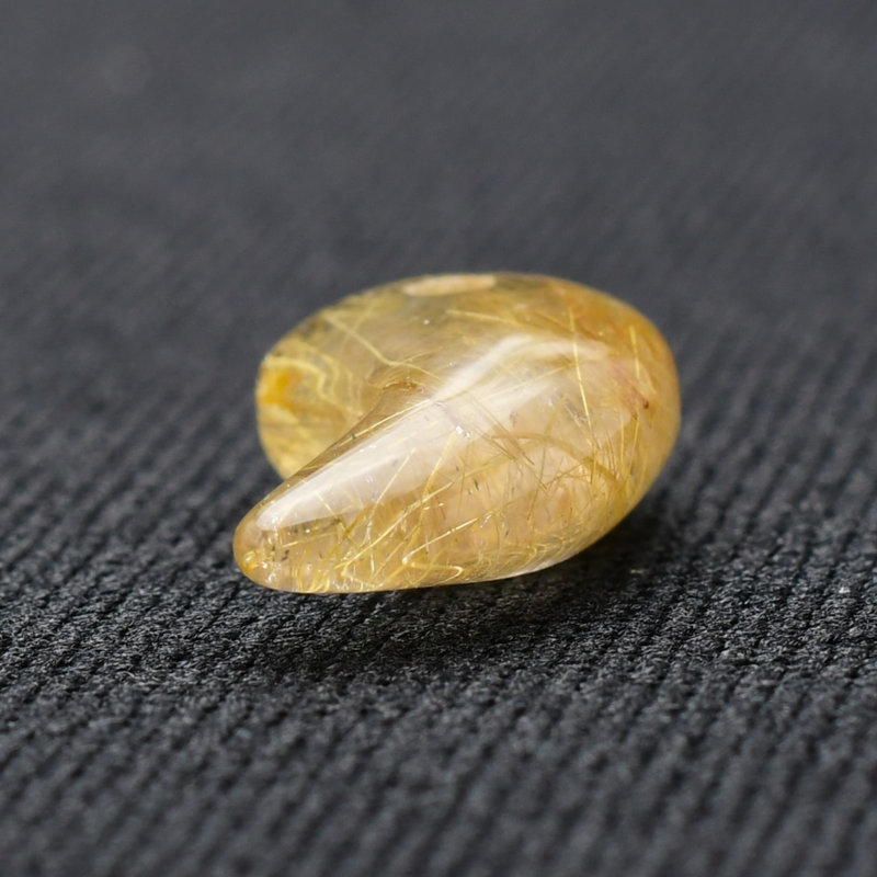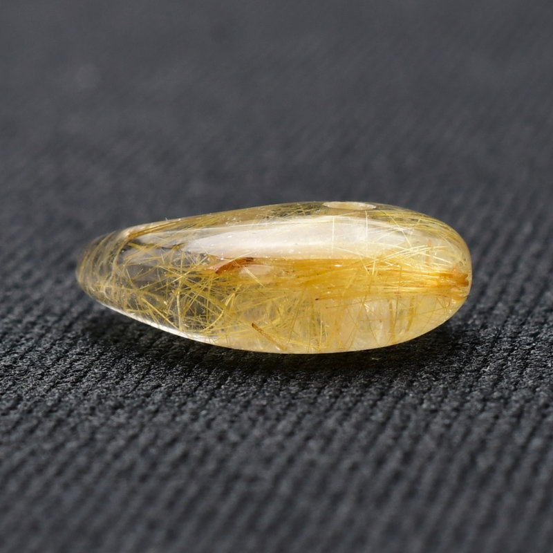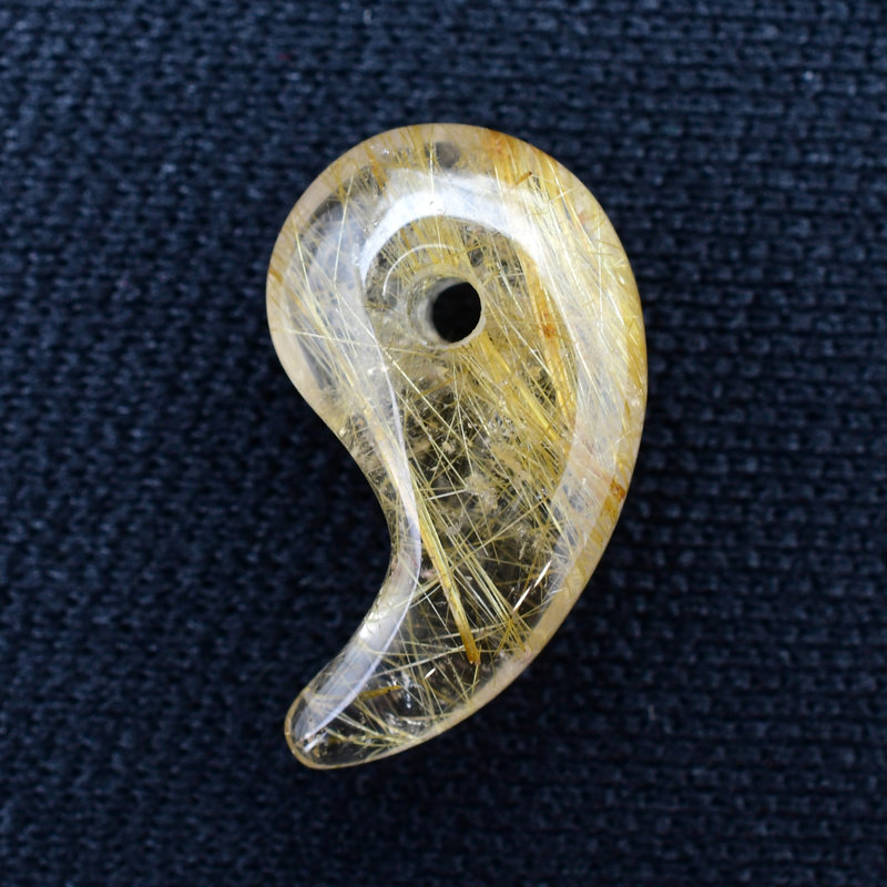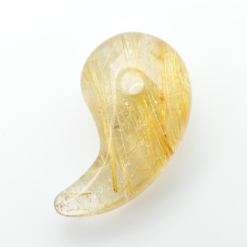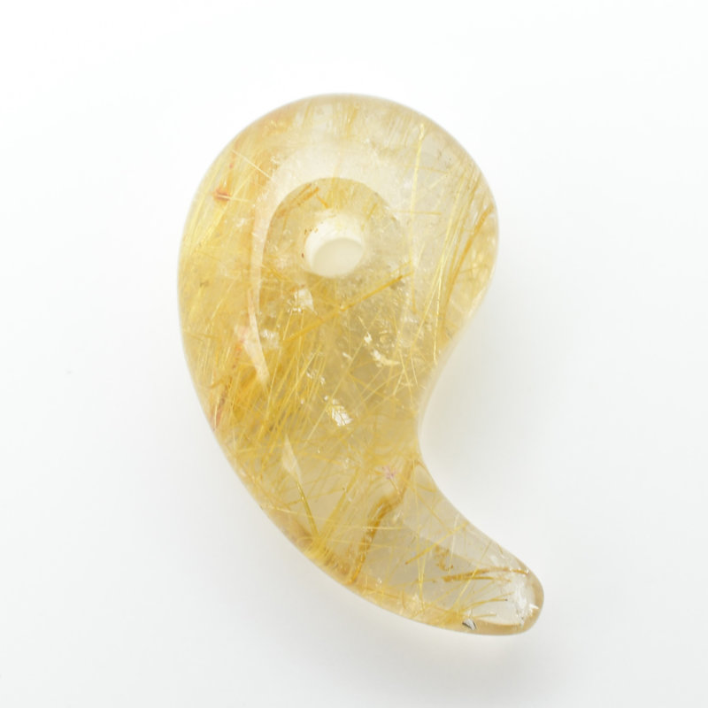 ◇柔らかな曲線を描く勾玉の中に黄金のルチルが流れるように伸び広がる一粒