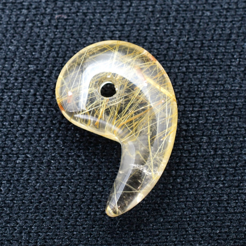 【透明感と散りばめられた金針が美しい一品】人気 勾玉 ゴールド ルチル クォーツ 一点物【KMr62】お守り効果 力が宿る パワーストーン 勝負運・金運・目標達成 プレゼント 守護石 京海堂