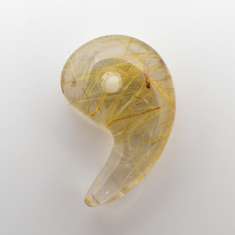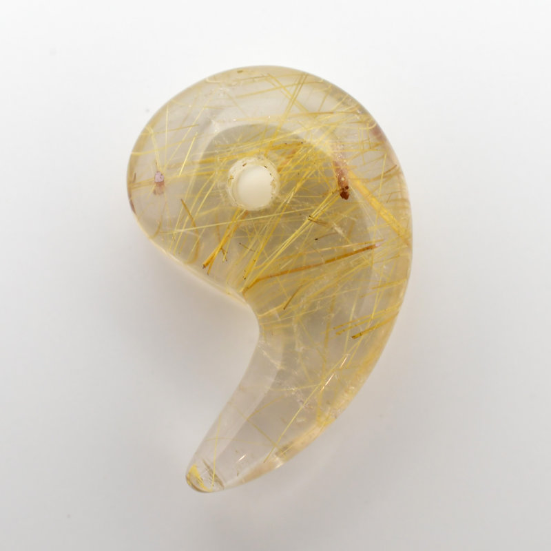 【透明感と散りばめられた金針が美しい一品】人気 勾玉 ゴールド ルチル クォーツ 一点物【KMr62】お守り効果 力が宿る パワーストーン 勝負運・金運・目標達成 プレゼント 守護石 京海堂 [KMr62]