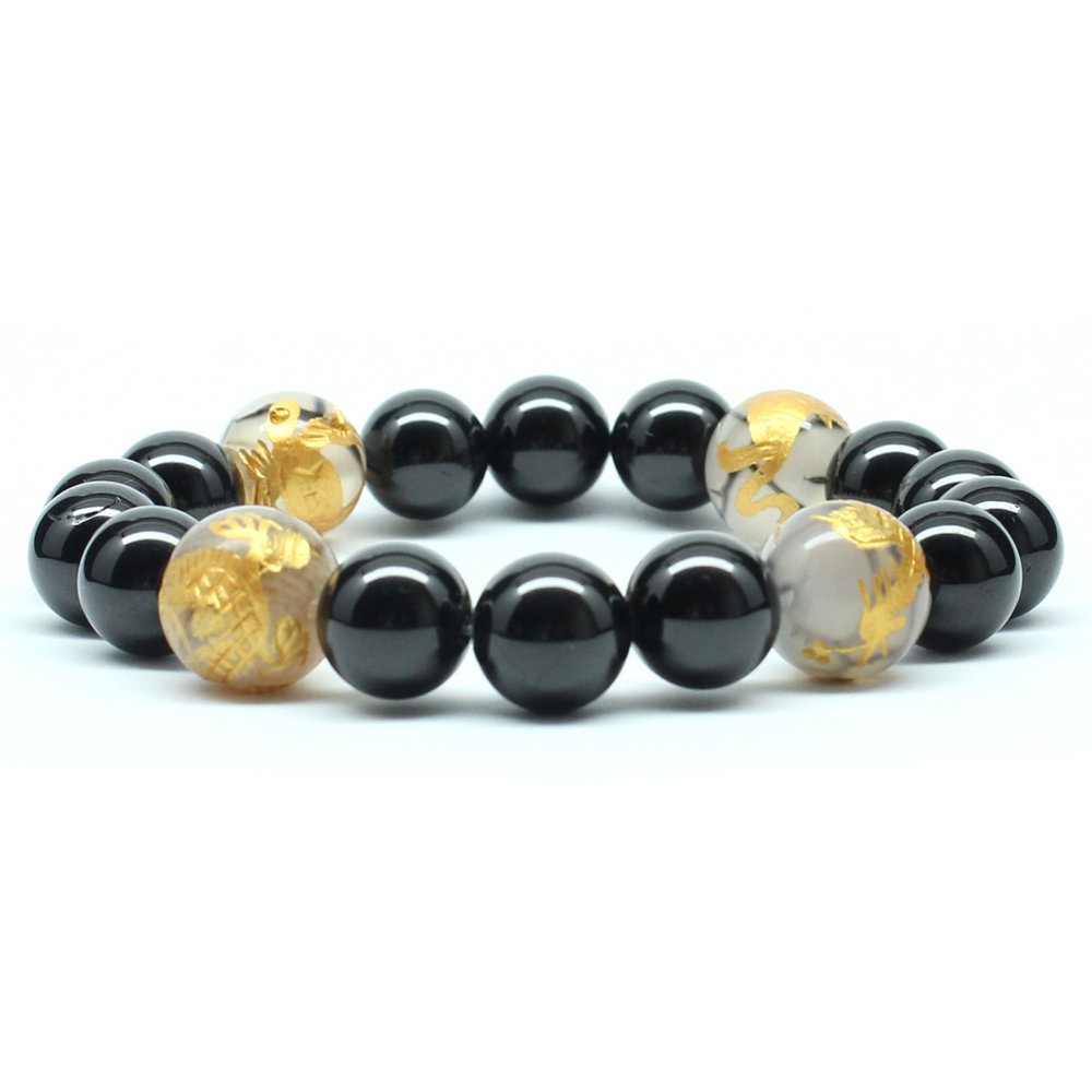 【四神獣ブレス】12ミリ×10mm MIX数珠 玄武 皇帝龍 鳳凰 白虎 &ドラゴンアゲート& ブラックスピネル ブレスレット 【石言葉「成長・成功」、白虎が「勇気・守護」、朱雀が「情熱・再生」、玄武が「安定・健康」お守り効果 贈り物 ご褒美 お揃い 京海堂 [mix1]