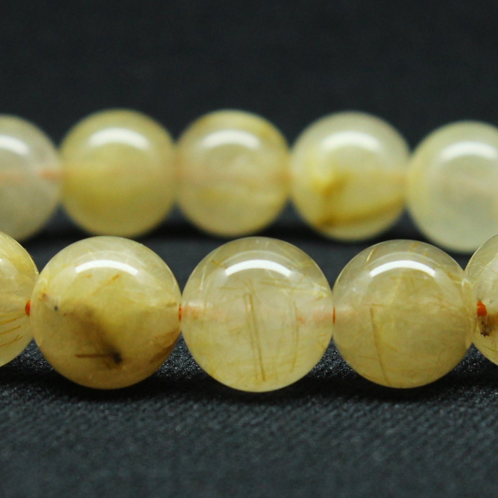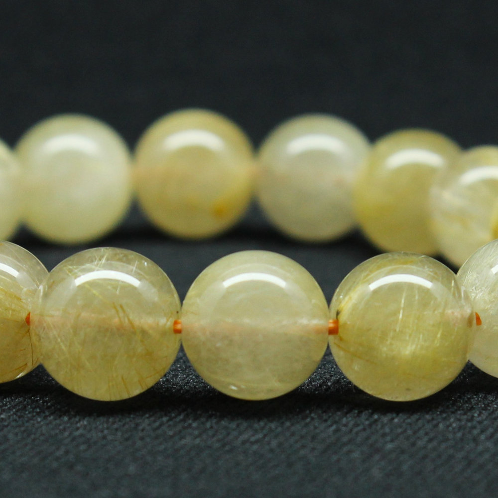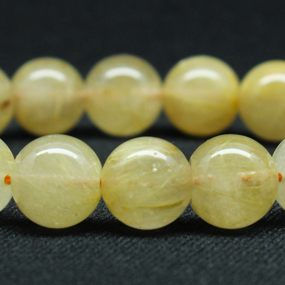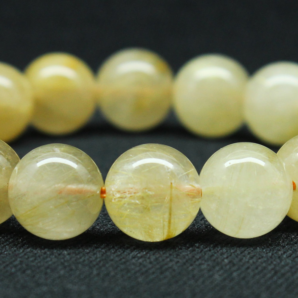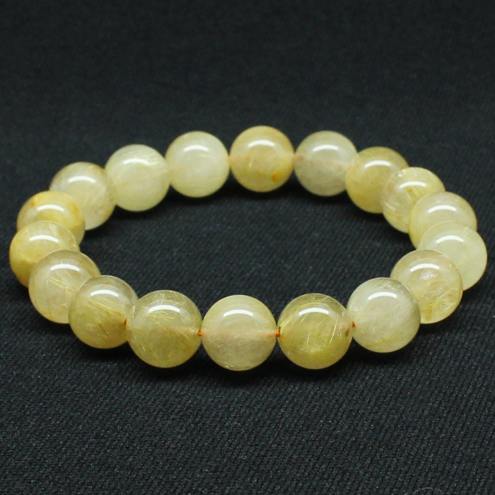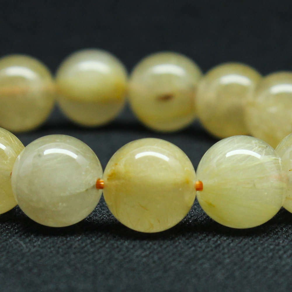 クリーミーなカラーが綺麗なゴールドルチル、手元が華やかになり珠の大きさも11mmと手が小さめな方にも丁度よい大きさ。